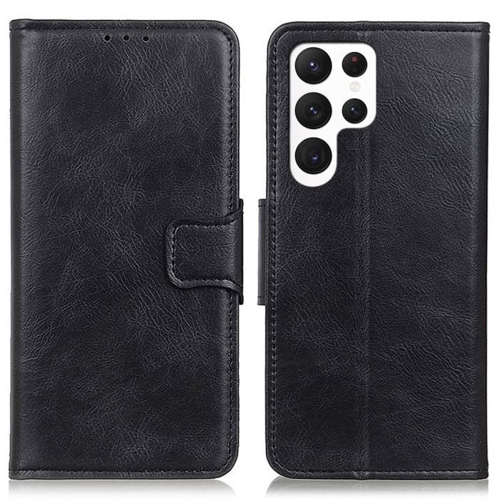 Samsung Galaxy S23 Ultra Fodral Crazy Horse Split Läder Svart