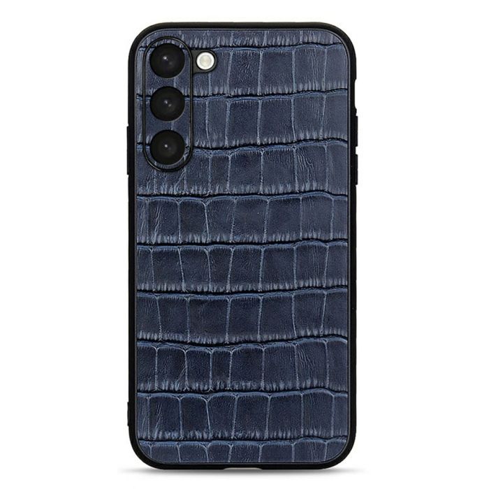 Samsung Galaxy S23 Plus Skal Äkta Läder Krokodil Textur Blå