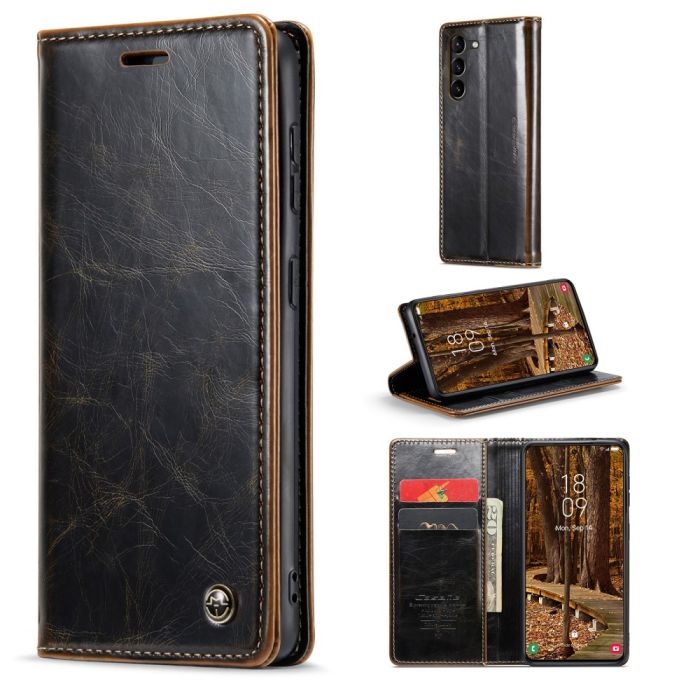 CASEME Samsung Galaxy S23 Plus Fodral Wax Textur Mörk Brun