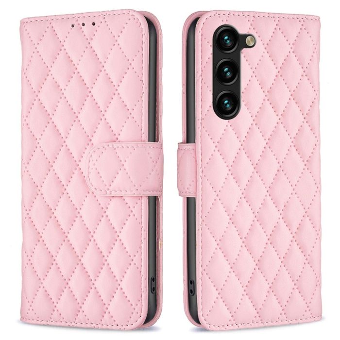 Lyft fram din Samsung Galaxy S23 Plus med detta extraordinära plånboksfodral. Med dess unika design som liknar små fyrkantiga diamanter kommer din enhet att lysa upp och dra allas blickar till sig. Det här fodralet är mer än bara ett skydd – det är en fashionabel accessoar som utstrålar elegans och stil. Den diamantliknande mönsterstrukturen ger din smartphone en glimrande skönhet som skiljer sig från mängden.