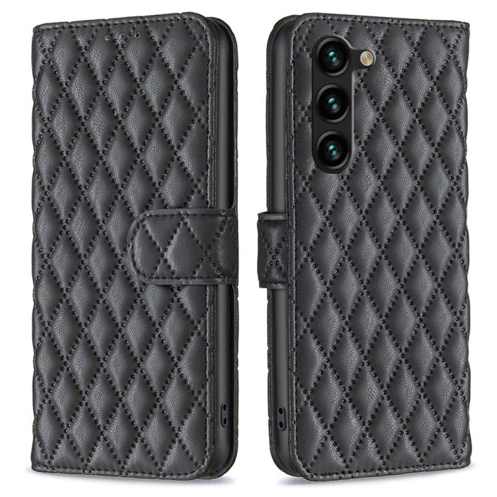 Lyft fram din Samsung Galaxy S23 Plus med detta extraordinära plånboksfodral. Med dess unika design som liknar små fyrkantiga diamanter kommer din enhet att lysa upp och dra allas blickar till sig. Det här fodralet är mer än bara ett skydd – det är en fashionabel accessoar som utstrålar elegans och stil. Den diamantliknande mönsterstrukturen ger din smartphone en glimrande skönhet som skiljer sig från mängden.