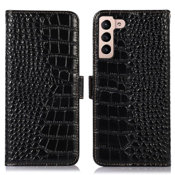 Samsung Galaxy S23 Fodral Äkta Läder Krokodil Textur Svart