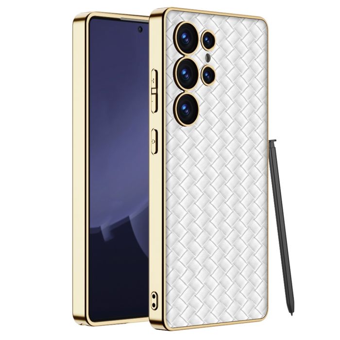 GKK Samsung Galaxy S25 Ultra Skal Vävd Hybrid Läder Vit