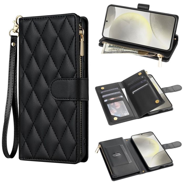 Samsung Galaxy S25 Fodral Läder Rhombus Svart