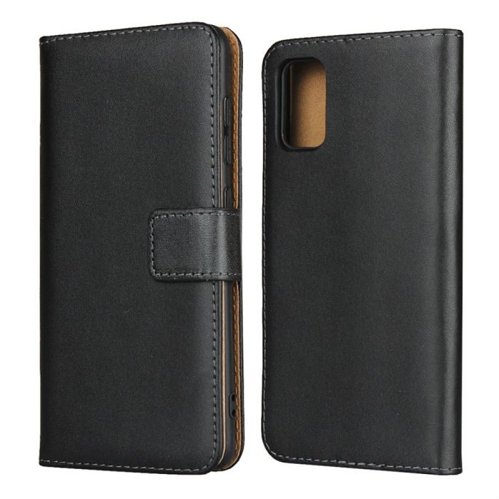 Samsung Galaxy A41 - Äkta Läder Plånboksfodral - Svart