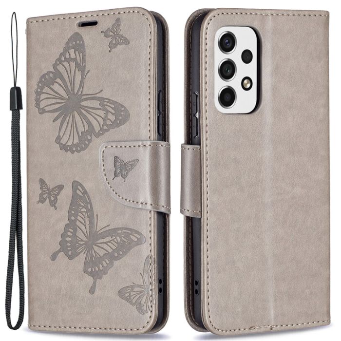 Samsung Galaxy A53 5G Fodral Tryckta Fjärilar Grå