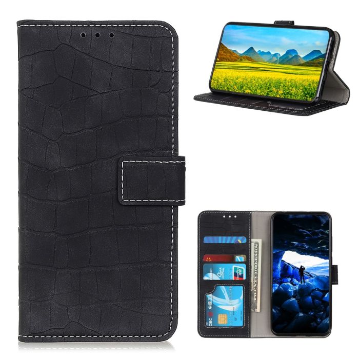 Läderfodral krokodil textur till Samsung Galaxy A72, ge din smartphone ett stilrent utseende samtidigt som du får med dina viktigaste medel. Fodralet har en magnet stängning som håller din smartphone, ID-kort, kreditkort och sedlar på säker plats.