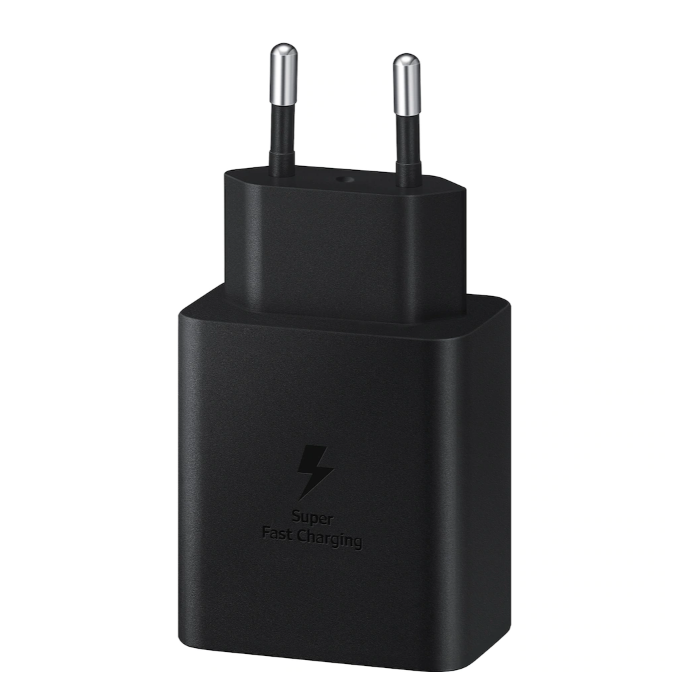 Samsung reseladdare med USB-C utgång och en maximal effekt på 45W.