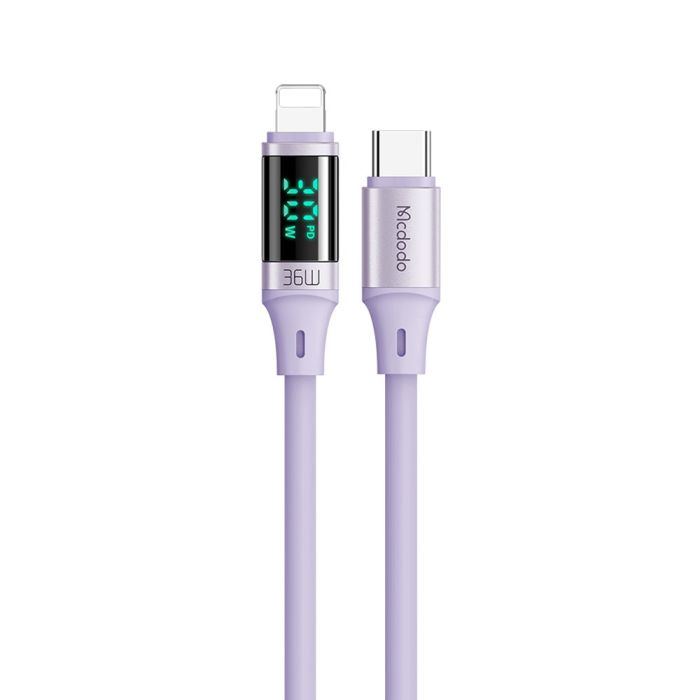 Mcdodo 36W 1.2m PD USB-C - Lightning LED Silikon Kabel Lila