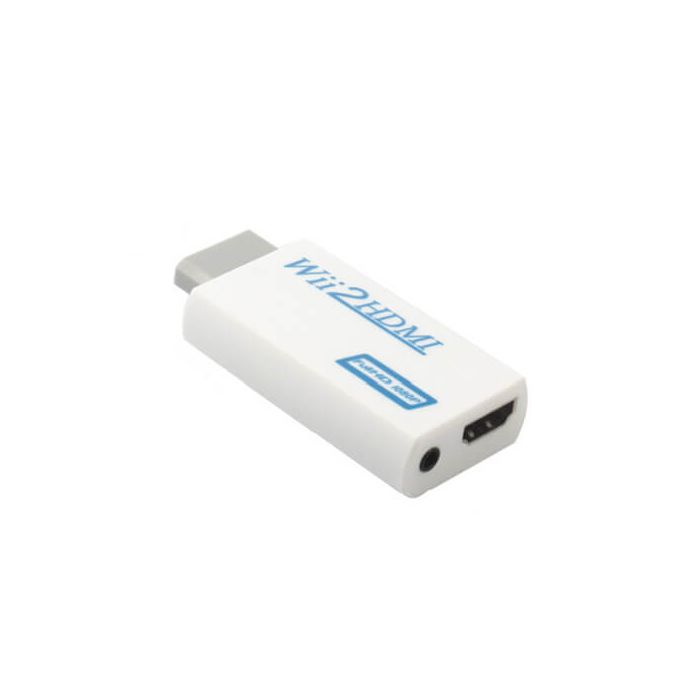 Denna adapter konverterar din Nintendo Wiis videoutgång till HDMI med ljud. Den kommer också med ett 3,5 mm ljudjack för att koppla in högtalare eller hörlurar.