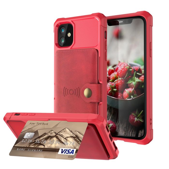 iPhone 12 Mini - Skal Med Magnetiskt Plånbok - Röd