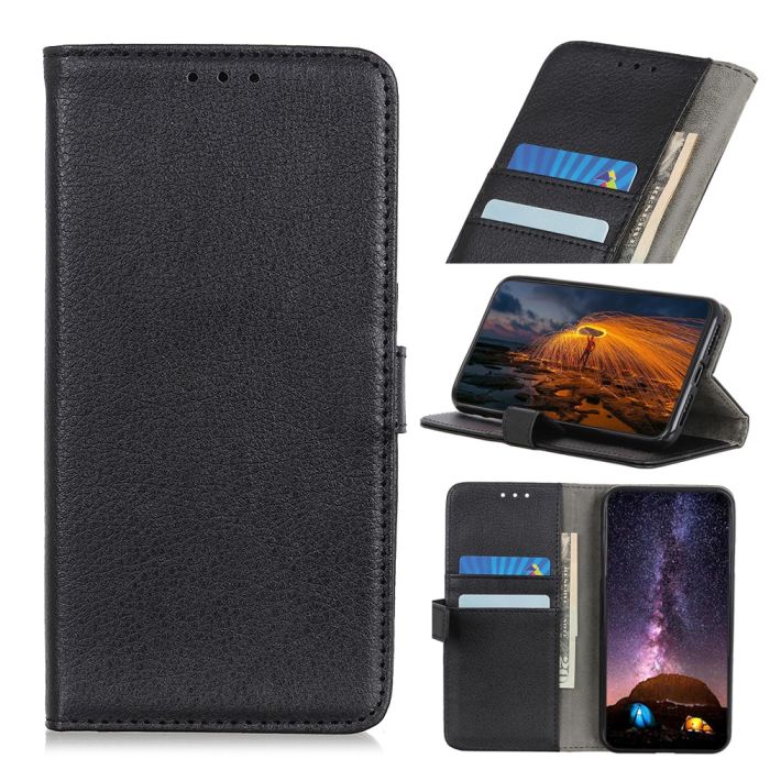 Läder fodral till iPhone 12 Pro Max med plånboksfunktion i litchi textur. Ge ditt fodral ett unikt och snyggt utseende. Fodralet skyddar effektivt emot stötar, oönskade repor och smuts.