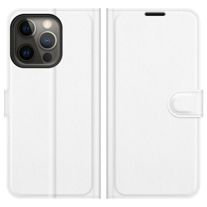iPhone 13 Pro Max - Litchi Slim Läder Fodral - Vit