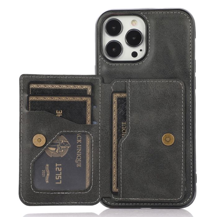 iPhone 13 Pro - Läderbelagt Skal Med Kortfack - Svart