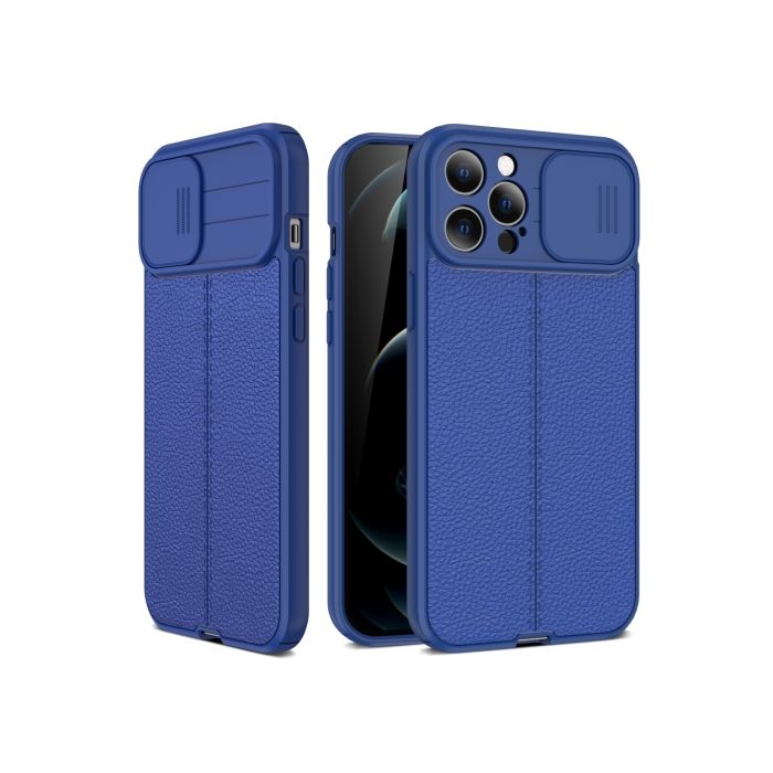 iPhone 14 Plus Skal CamShield Litchi Textur Blå
