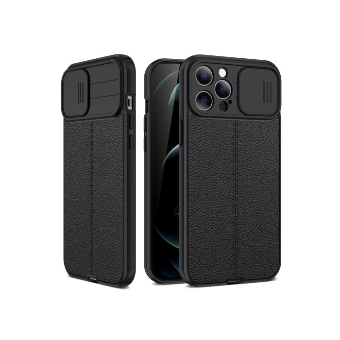 iPhone 14 Plus Skal CamShield Litchi Textur Svart