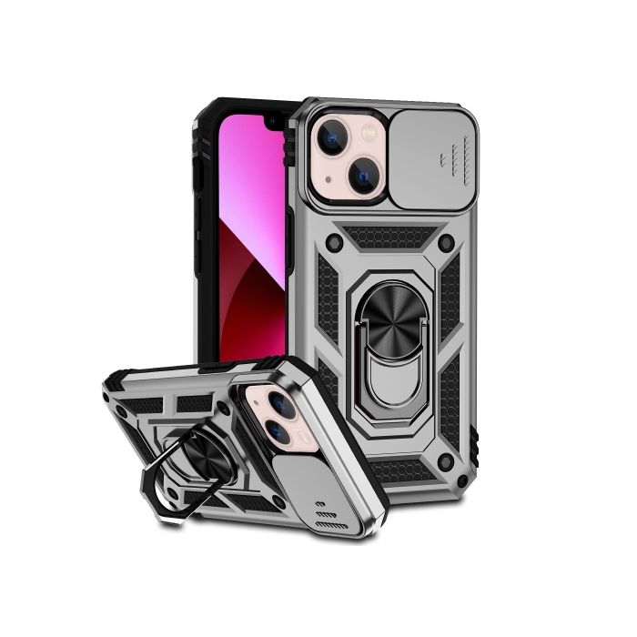 iPhone 14 Plus Skal CamShield Hybrid Ring Silver
