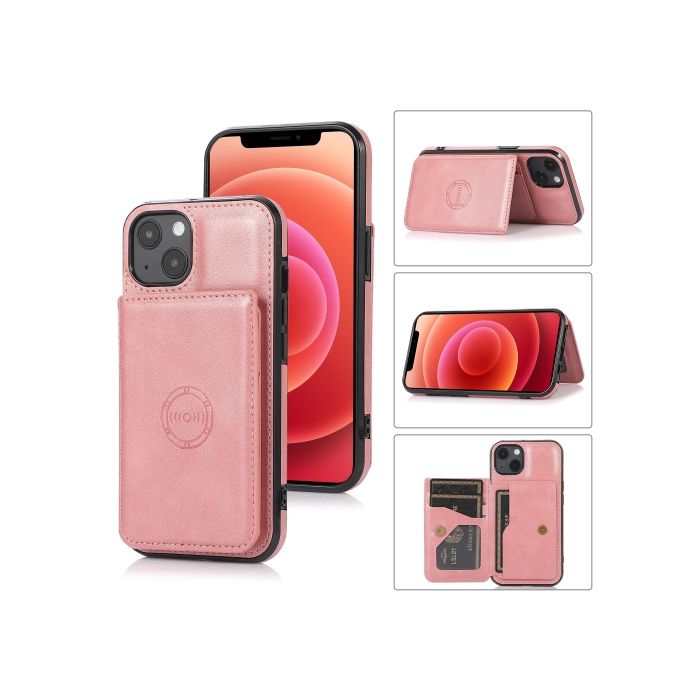 iPhone 14 Plus Skal Med Kortfack Och Magnet Roséguld