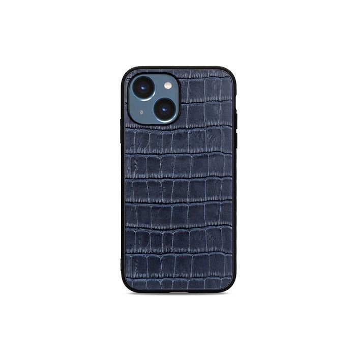 iPhone 14 Plus Skal Äkta Läder Krokodil Textur Blå