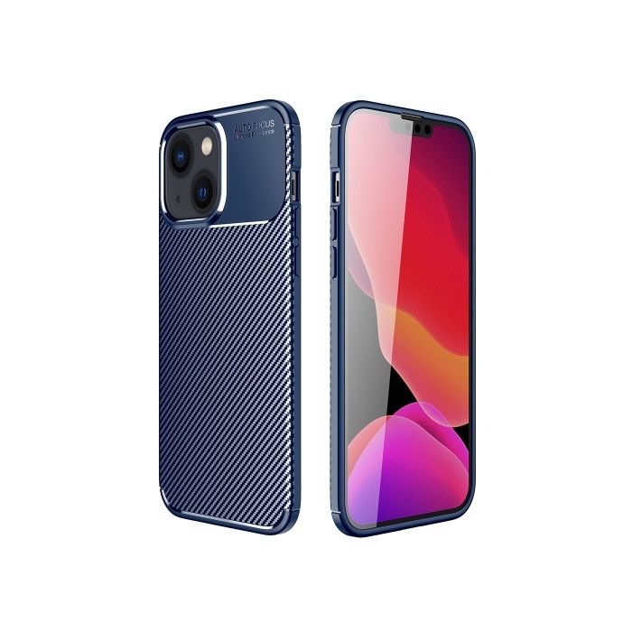 iPhone 14 Plus Skal Kolfiber Textur Blå