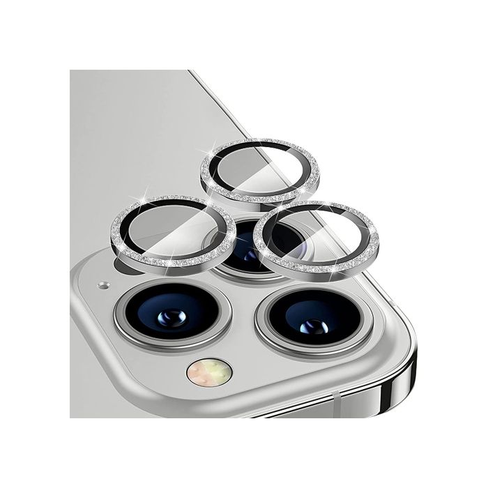 ENKAY iPhone 14 Pro / 14 Pro Max Linsskydd Aluminium Glitter Silver