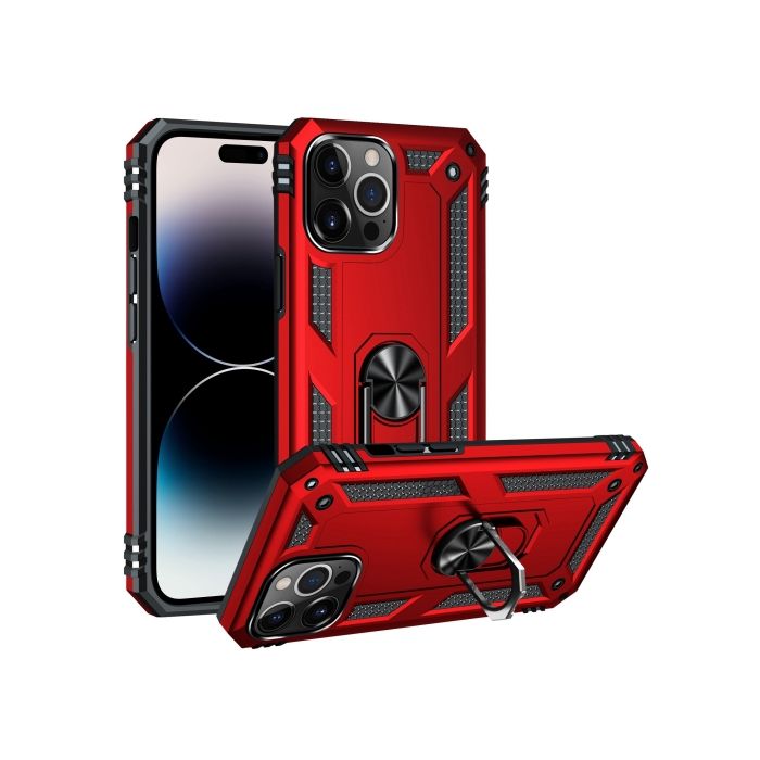 iPhone 14 Pro Max Skal Shockproof Hybrid Ring Röd