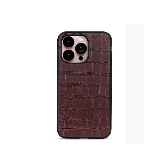 iPhone 14 Pro Max Skal Äkta Läder Krokodil Textur Brun