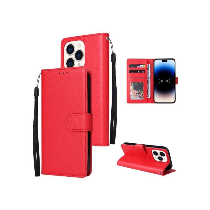 iPhone 14 Pro Fodral Läder Med Snodd Röd