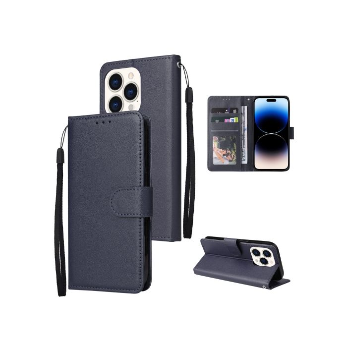 iPhone 14 Pro Fodral Läder Med Snodd Mörk Blå