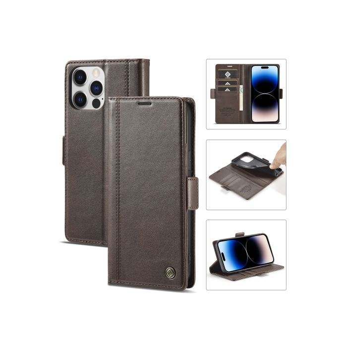 LC.IMEEKE iPhone 14 Pro Fodral Med Magnetisk Stängning Brun