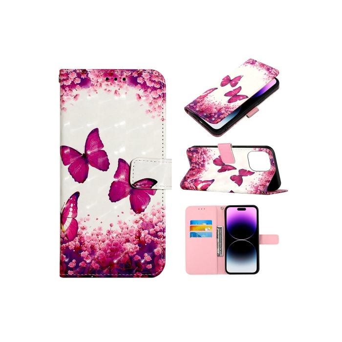iPhone 14 Pro Fodral Med Tryck Rosa Fjäril