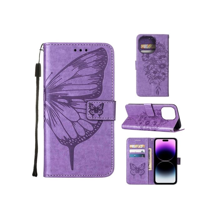 iPhone 14 Pro Fodral Med Tryckt Fjäril Lila