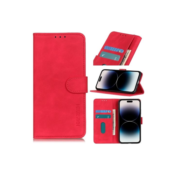 KHAZNEH iPhone 14 Pro Fodral Retro Läder Röd