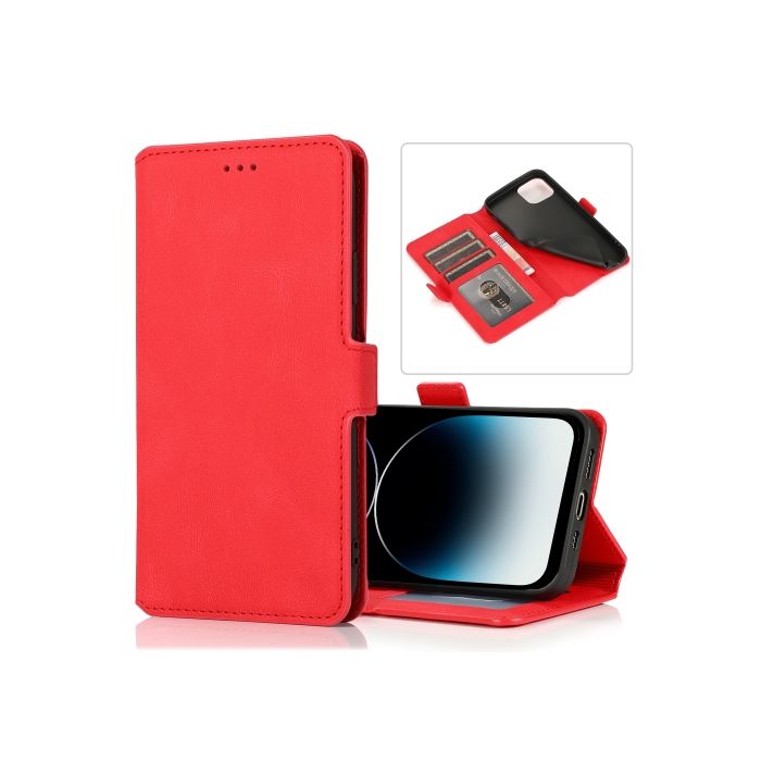 Plånboksfodral i retrostil med plånboksfunktion till iPhone 14 Pro.
