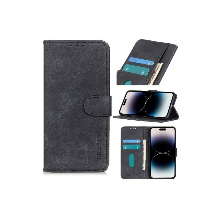 KHAZNEH iPhone 14 Pro Fodral Retro Läder Svart