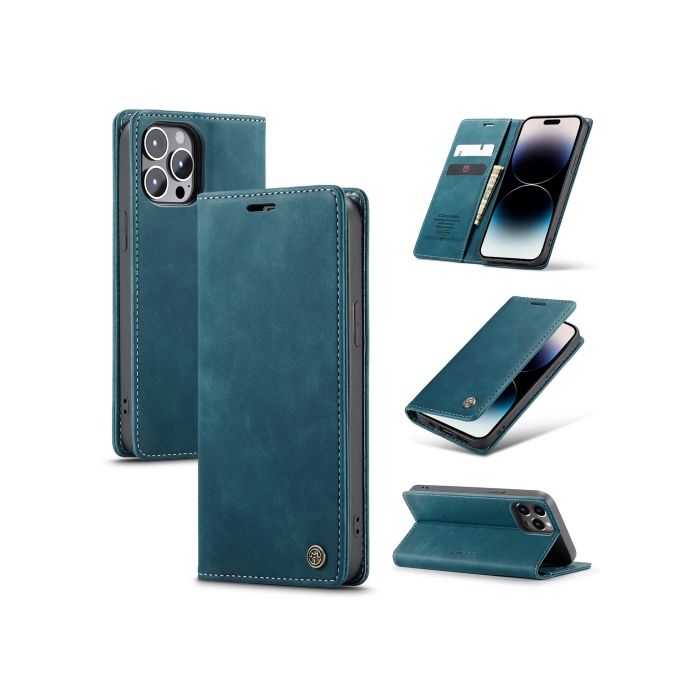 CASEME iPhone 14 Pro Fodral Retro Flip Blå
