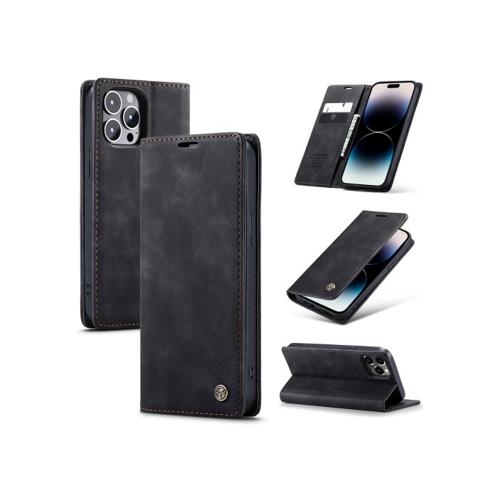 CASEME iPhone 14 Pro Fodral Retro Flip Svart