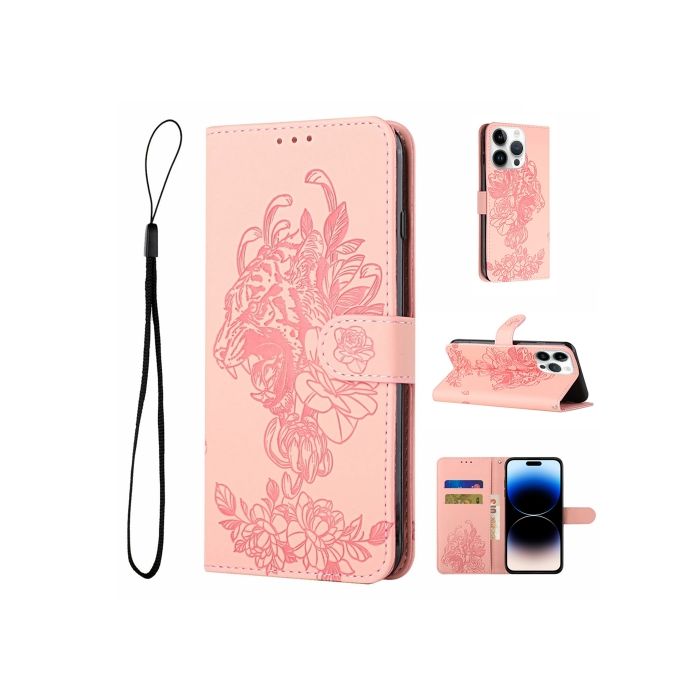 iPhone 14 Pro Fodral Tiger Tryck Roséguld