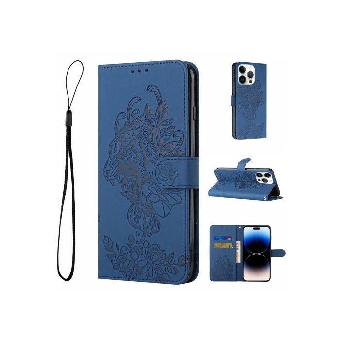 iPhone 14 Pro Fodral Tiger Tryck Royal Blue
