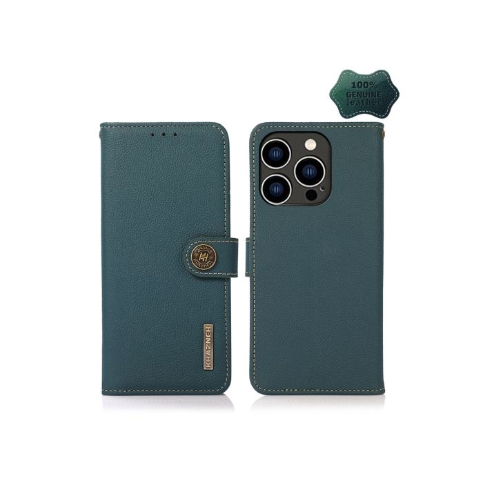 KHAZNEH iPhone 14 Pro Fodral RFID Äkta Läder Grön