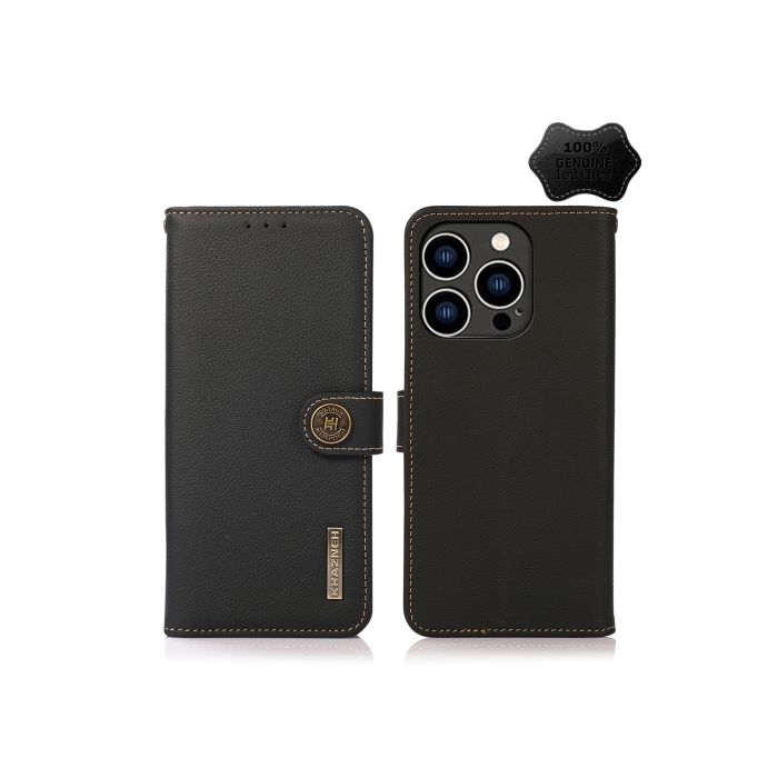 KHAZNEH iPhone 14 Pro Fodral RFID Äkta Läder Svart