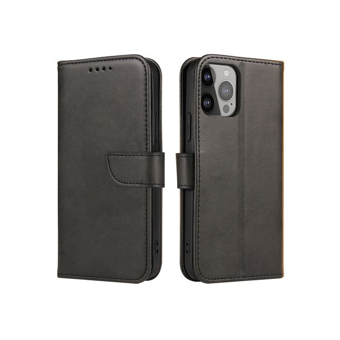 Läderfodral till iPhone 14 Pro, ge din smartphone ett stilrent utseende samtidigt som du får med dina viktigaste medel. Fodralet har en magnet stängning som håller din smartphone, ID-kort, kreditkort och sedlar på säker plats.
