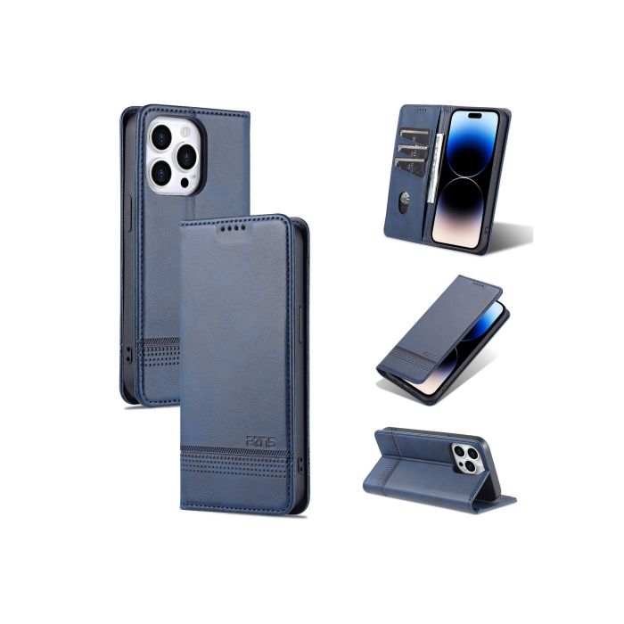 AZNS iPhone 14 Pro Fodral Flip Läder Mörk Blå