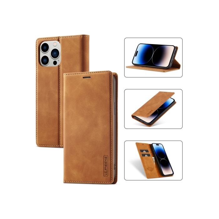 LC.IMEEKE iPhone 14 Pro Fodral Flip Läder Brun
