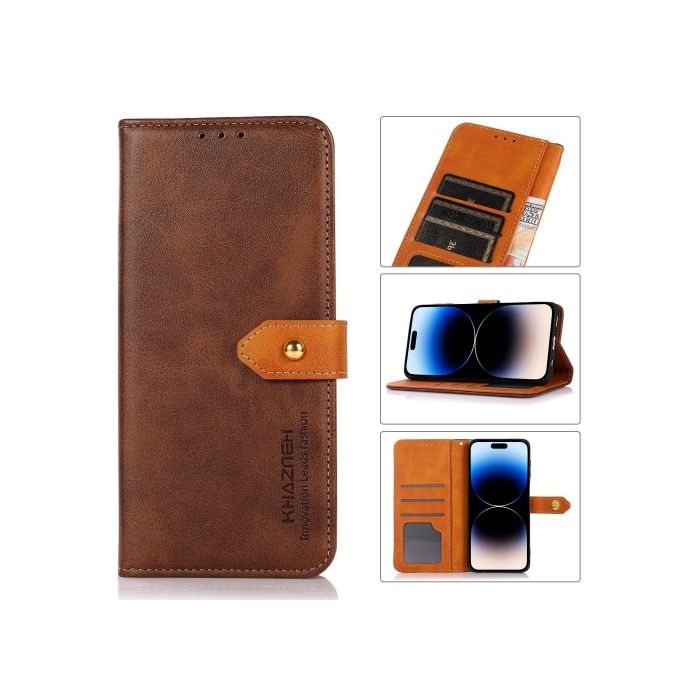 KHAZNEH iPhone 14 Pro Fodral Dual-Color Läder Brun