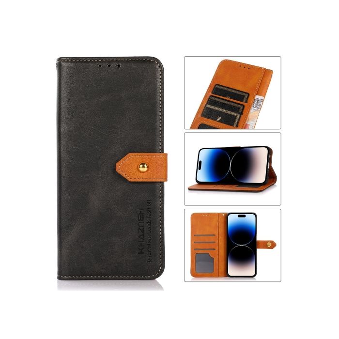 KHAZNEH iPhone 14 Pro Fodral Dual-Color Läder Svart