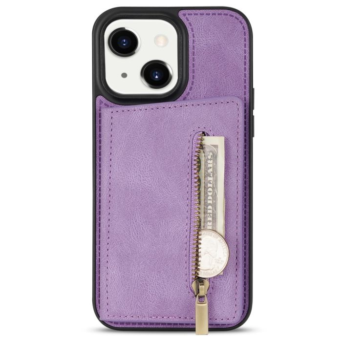 iPhone 15 Skal Läder Med Plånboksfunktion Lila
