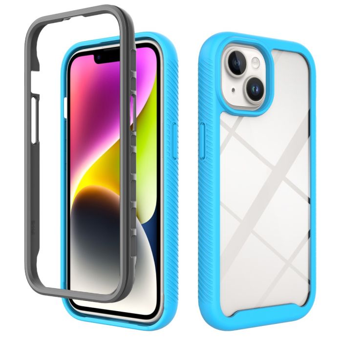 iPhone 15 Skal Shockproof Med Frontram Ljus Blå