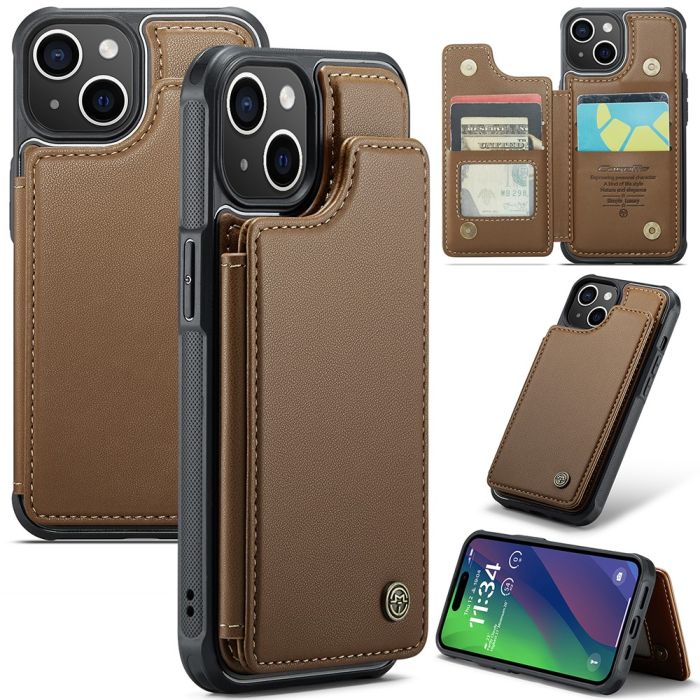 CASEME iPhone 15 Skal RFID Kickstand Plånbok Brun