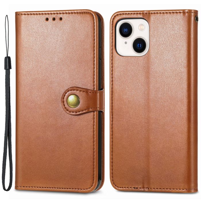 iPhone 15 Plus Fodral Läder Magnetisk Mässing Brun